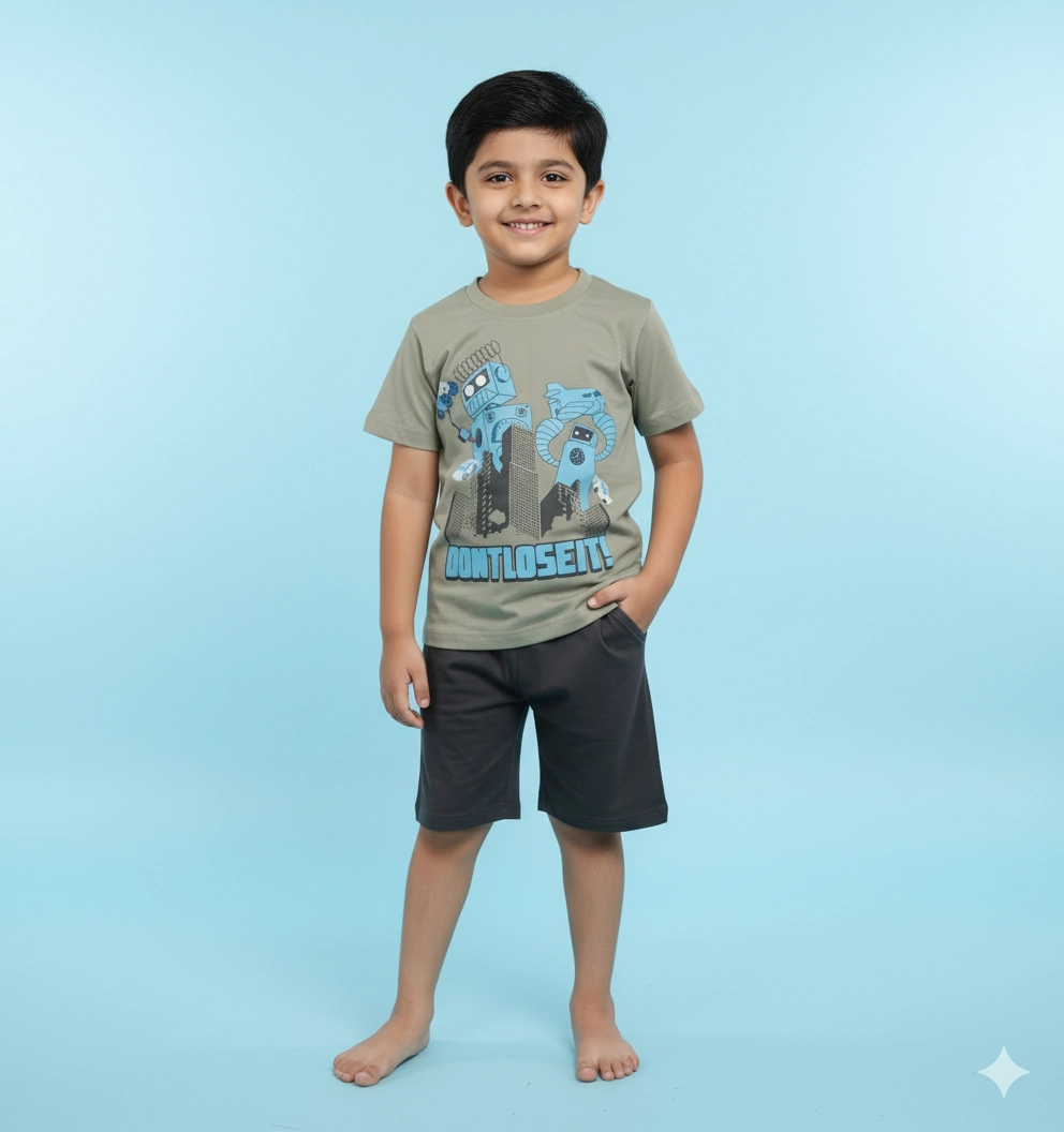 Crafted from soft, breathable cotton fabric, this summer outfit is gentle on kids’ skin and helps maintain airflow during hot weather. The relaxed fit allows free movement, perfect for active boys, while the durable stitching ensures long-lasting use even with frequent washing. Stylish yet practical, this outfit is a must-have for your child’s summer wardrobe.